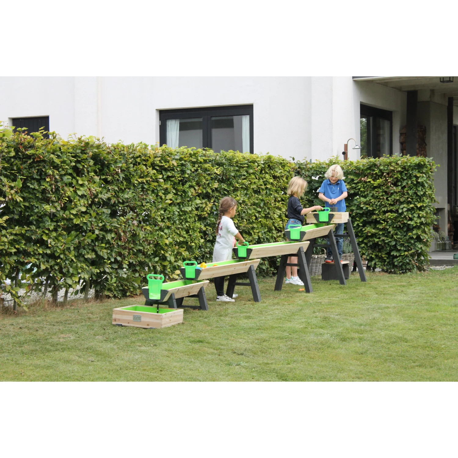 De EXIT AquaFlow waterbaan mega-set is een unieke waterspeelbaan voor kinderen en garandeert eindeloos veel speelplezier. De EXIT AquaFlow waterspeelbaan mega-set is maar liefst 4,75 meter lang en daarmee de grootste waterbaan van de AquaFlow serie. De waterbaan bestaat uit verschillende bakken met 5 sluizen waardoor meerdere kinderen er tegelijk mee kunnen spelen. De goten en bakken hebben een kunststof binnenzijde die waterdicht en eenvoudig te reinigen is.
