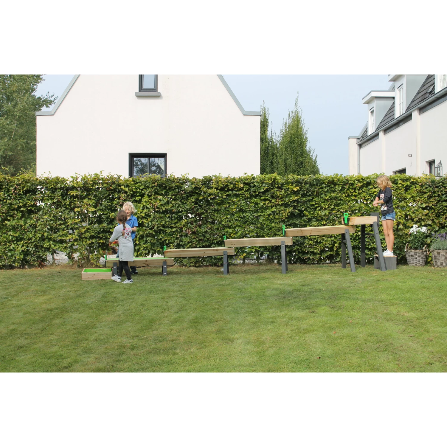 De waterbakken van de AquaFlow waterbaan kunnen in verschillende hoeken worden neergezet, recht, zigzaggend of juist in een bocht, het kan allemaal!