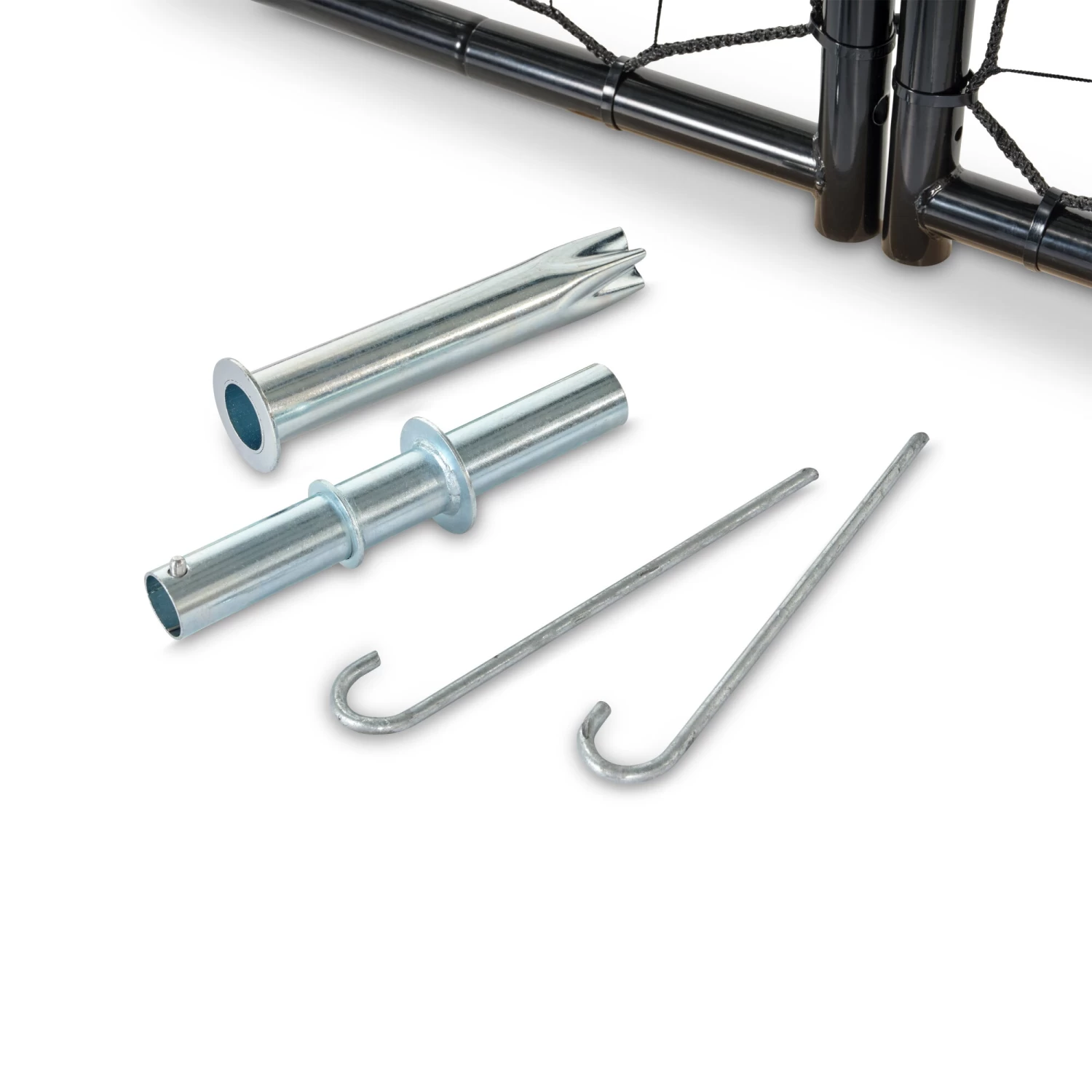De ballenvanger bestaat uit twee zwarte frames van 300 x 300 cm, die aan elkaar bevestigd kunnen worden tot een ballenvanger van 6 meter breed en 3 meter hoog. Het frame is gegalvaniseerd en gepoedercoat voor een lange levensduur en een mooi uiterlijk. De horizontale voeten die met haringen en een grondanker vastgezet kunnen worden, zorgen ervoor dat het sportnet ook bij een harde bal altijd op de plek blijven staan.