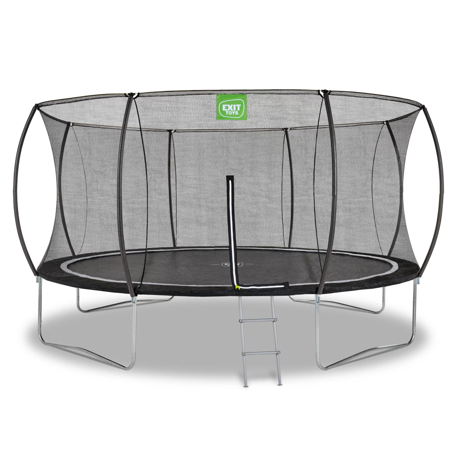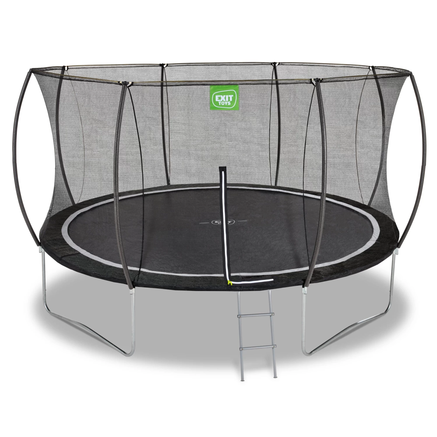 De EXIT Black Edition trampoline is een ronde trampoline met een matzwarte beschermrand. De grote trampoline heeft een veiligheidsnet met gebogen staanders, zodat het net altijd strakgespannen staat en kinderen er niet in kunnen blijven hangen. Ook heeft het veiligheidsnet een opvallende ritssluiting, zodat je direct kunt zien of de rits goed is gesloten. Een trampolineladder wordt bij deze trampoline op poten standaard meegeleverd waardoor de trampoline eenvoudig te betreden is. De EXIT Black Edition staat door de strakke vormgeving prachtig in elke tuin en is budgetvriendelijk geprijsd.