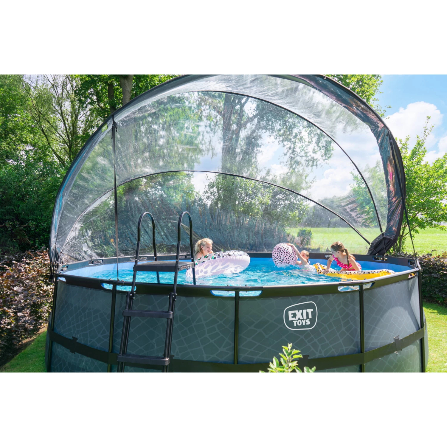 Met de EXIT overkapping voor zwembaden ben je niet langer afhankelijk van de weersvoorspellingen. De overkapping zorgt ervoor dat er geen vuil meer in het water kan komen en is tegelijkertijd een duurzame oplossing voor het verwarmen van je water, want de warmte van de zon wordt onder de kap vastgehouden. De overkapping is zeer eenvoudig te openen door een uniek scharniermechanisme en dankzij het transparante zeil mis je niets van wat er buiten het bad gebeurt. Met een zwembad overkapping van EXIT Toys op je zwembad heb je zwemplezier in weer en wind!