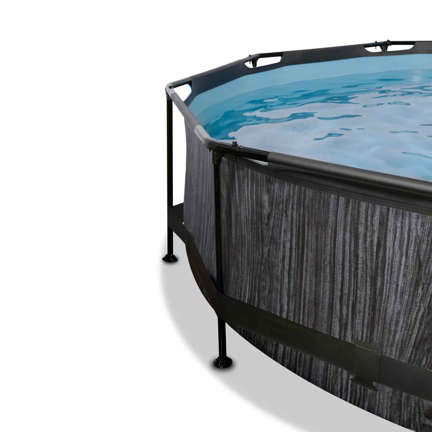 EXIT Black Wood zwembad ø300x76cm met filterpomp – zwart