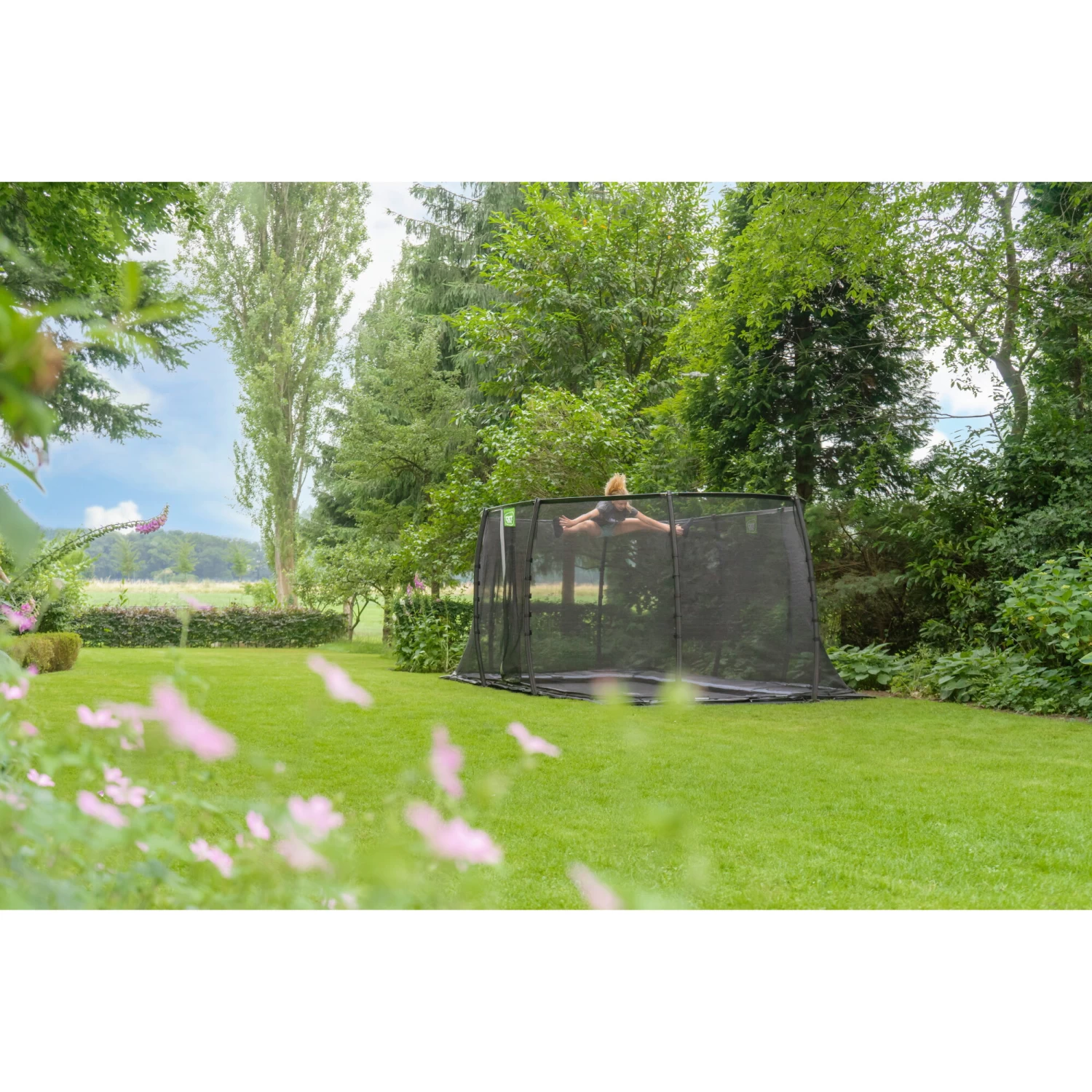 EXIT Dynamic groundlevel trampoline 275x458cm met veiligheidsnet – zwart