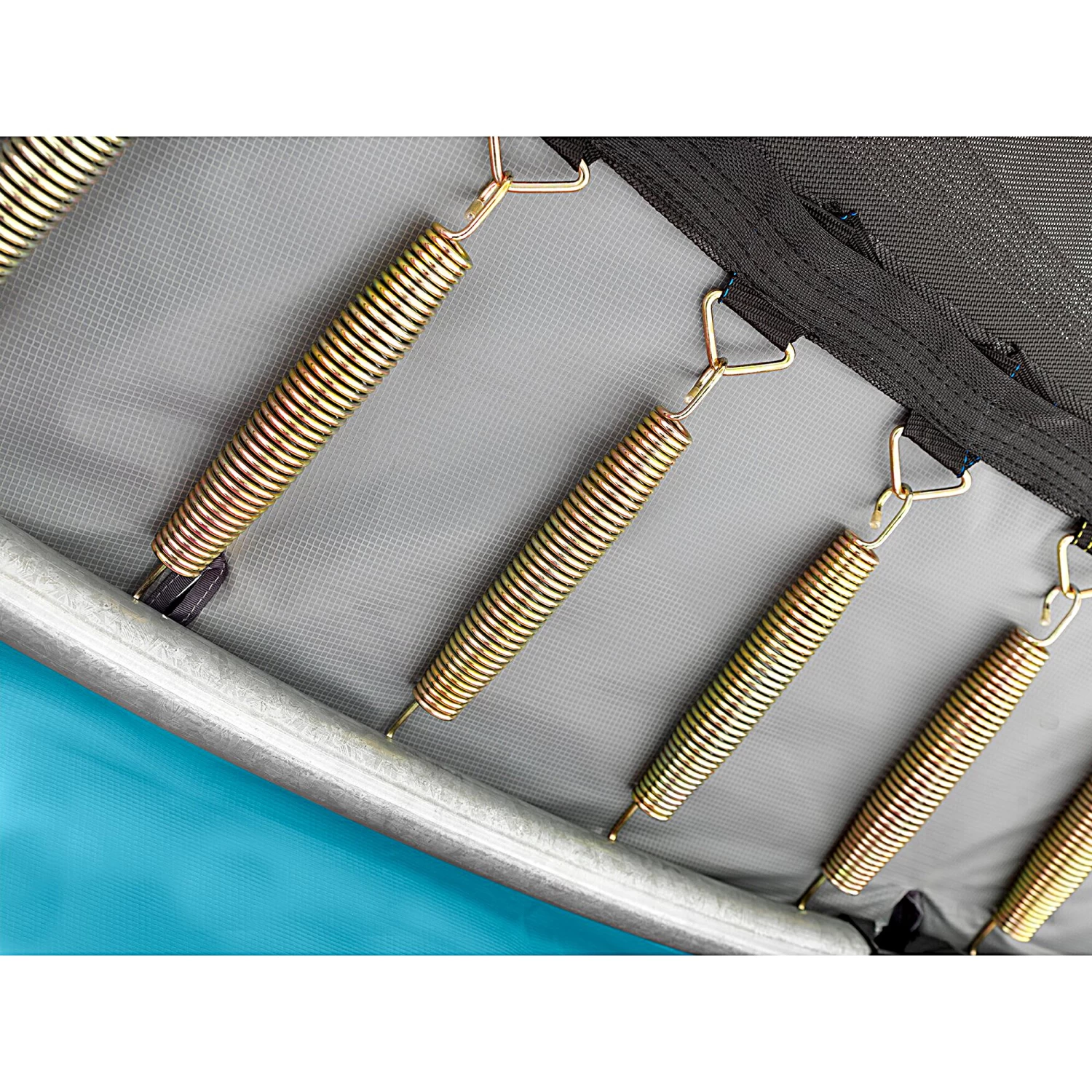 EXIT Elegant Premium trampolines zijn niet alleen mooi en van hoge kwaliteit, maar ook nog eens duurzaam. Het frame is gegalvaniseerd en daarna gepoedercoat, zodat roest geen kans maakt. De extra lange dubbel conische premium-veren, die 21,6 cm lang zijn, zorgen voor de ultieme springervaring met een perfecte bounce en zachte landing. Ook de rok van de beschermrand is langer dan gebruikelijk en de vulling in de beschermrand is dikker in vergelijking met de standaard EXIT Elegant trampoline. En de extra dikke PVC toplaag op de beschermrand zorgt er tenslotte voor dat deze langer meegaat, super duurzaam dus!