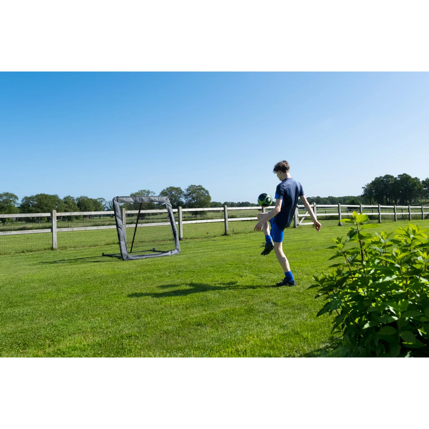 De EXIT Kickback multisport rebounder, van 164 x 164 cm, is licht van gewicht en heeft twee wieltjes, zodat de kinderen zelf de rebounder snel en eenvoudig kunnen verplaatsen of opbergen na gebruik. Maak gebruik van de grondankers om de rebounder stevig op de grond te bevestigen zodat de rebounder altijd stevig op de plek blijft staan. De EXIT rebounder is voor verschillende sporten inzetbaar, zoals voetbal, volleybal, handbal, hockey en tchouckball. Schiet of gooi de bal in het elastische net en zorg dat je snel genoeg reageert om de bal weer onder controle te krijgen!