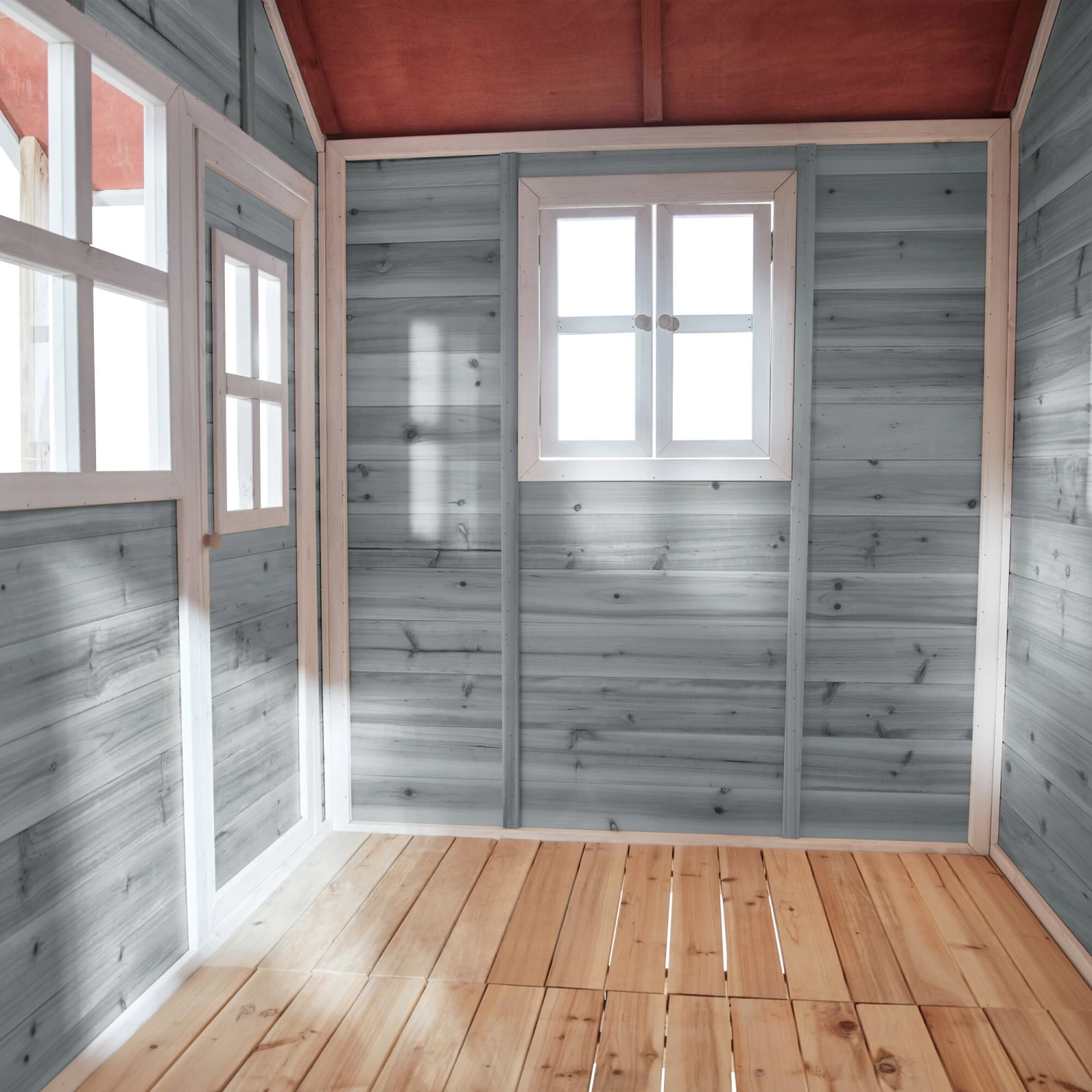 De speelhuisjes van EXIT Toys zijn gemaakt van FSC® gecertificeerd cederhout (FSC 100%, FSC® SCS-COC-007799). Deze houtsoort splintert niet en is van nature bestand tegen weersinvloeden zoals regen en dus resistent tegen houtrot. Het EXIT Loft 750 speelhuis heeft daarnaast een waterdicht bitumen dak, waardoor kinderen er in weer en wind mee kunnen spelen. Je hoeft EXIT houten speelhuisjes voor gebruik niet te behandelen, kinderen kunnen er direct veilig mee spelen.