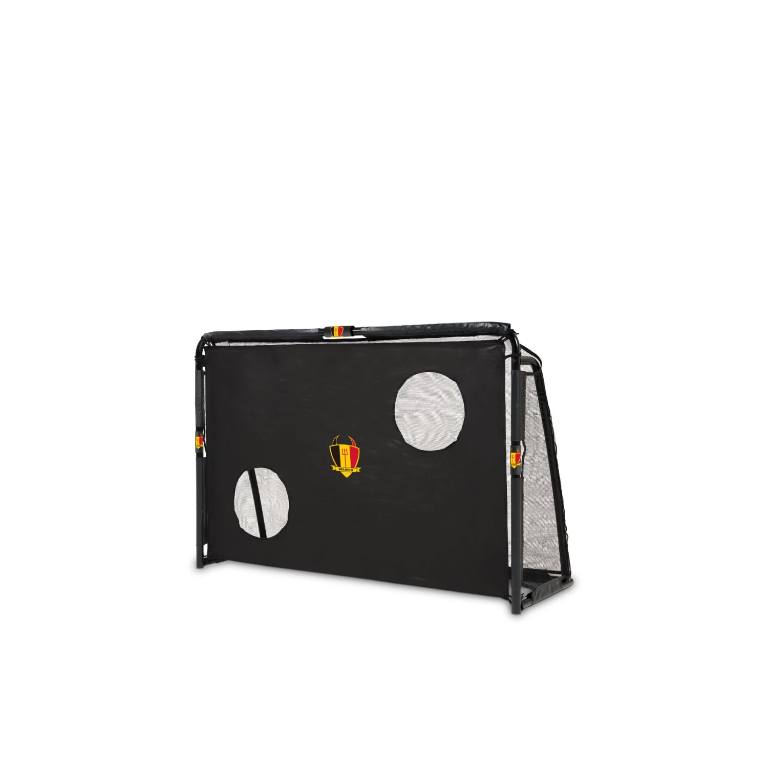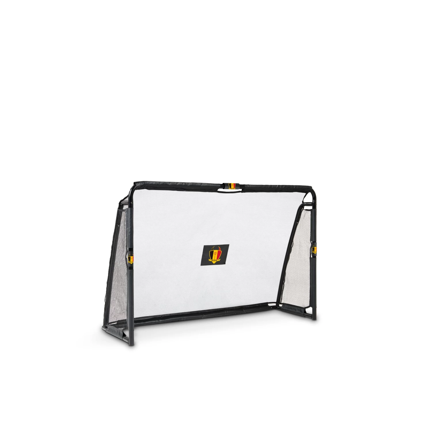 Het robuuste zwarte frame van het voetbaldoel is gegalvaniseerd en gepoedercoat voor een lange levensduur en het fijnmazige net is hier op innovatieve wijze aan bevestigd, de bal kan hierdoor niet tussen het frame en het net doorschieten. En is schieten in het voetbaldoel geen uitdaging meer voor je? Hang dan het trainingsscherm met schietgaten in het doel voor meer uitdaging.