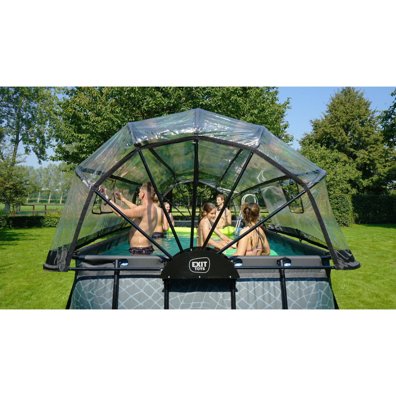 EXIT Stone zwembad 540x250x122cm met zandfilterpomp en overkapping – grijs