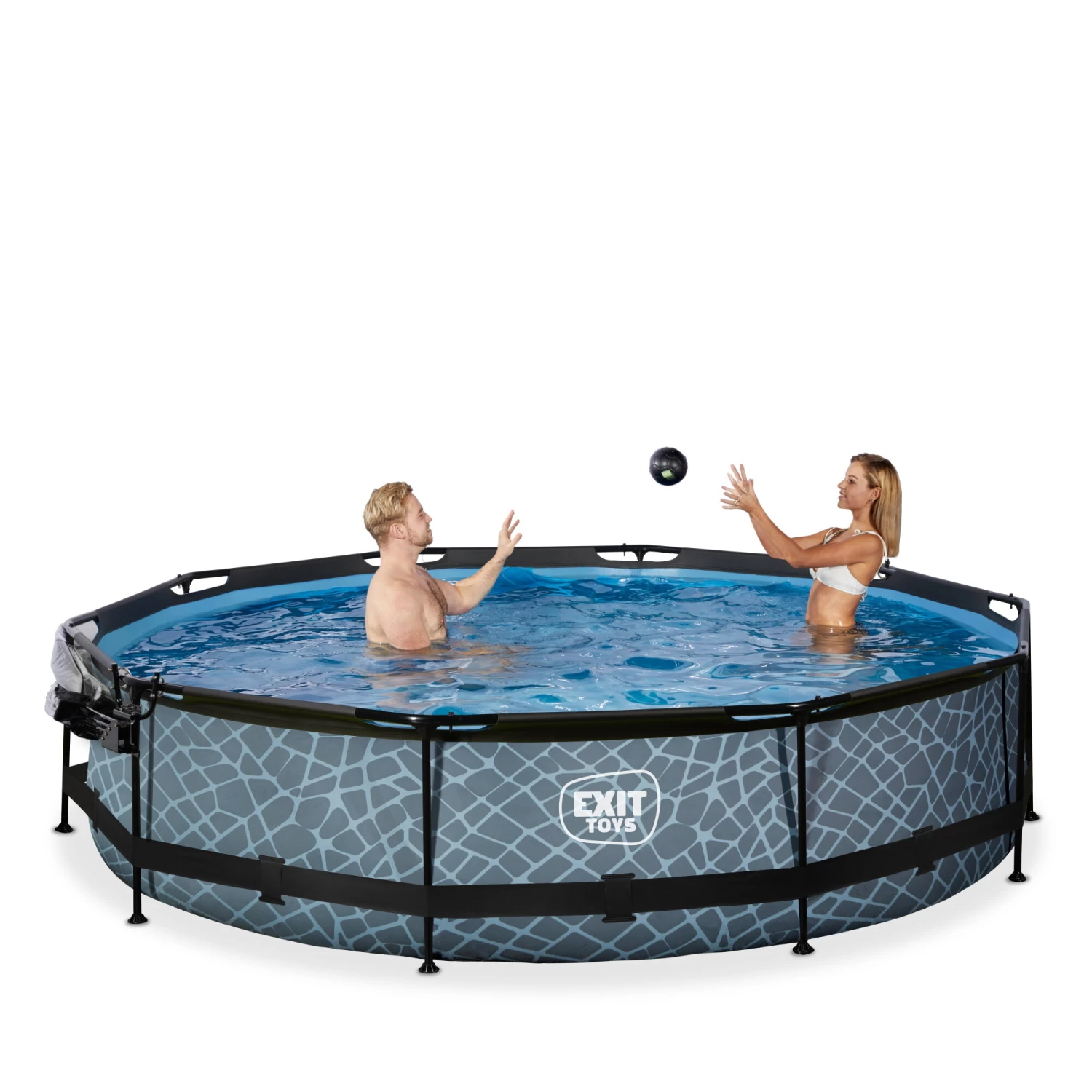 Het EXIT Stone zwembad ø360x76cm is een groot rond grijskleurig frame zwembad met overkapping. Het zwembad is standaard voorzien van een filterpomp en valt op tussen andere zwembaden door zijn stoere steenpatroon. Ben je op zoek naar een leuk en tegelijkertijd uniek en hoogwaardig frame zwembad in je tuin? Steel de show met de ronde zwembaden van EXIT Toys!