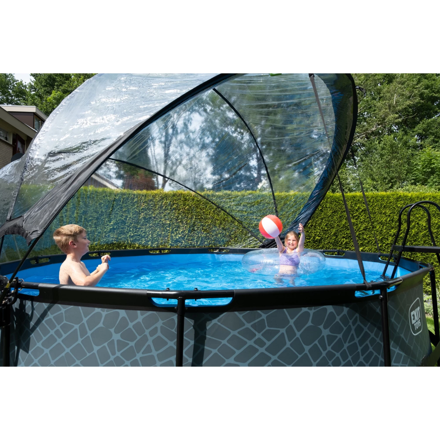 Met de EXIT overkapping voor zwembaden ben je niet langer afhankelijk van de weersvoorspellingen. De overkapping zorgt ervoor dat er geen vuil meer in het water kan komen en is tegelijkertijd een duurzame oplossing voor het verwarmen van je water, want de warmte van de zon wordt onder de kap vastgehouden. De overkapping is zeer eenvoudig te openen door een uniek scharniermechanisme en dankzij het transparante zeil mis je niets van wat er buiten het bad gebeurt. Met een zwembad overkapping van EXIT Toys op je zwembad heb je zwemplezier in weer en wind!