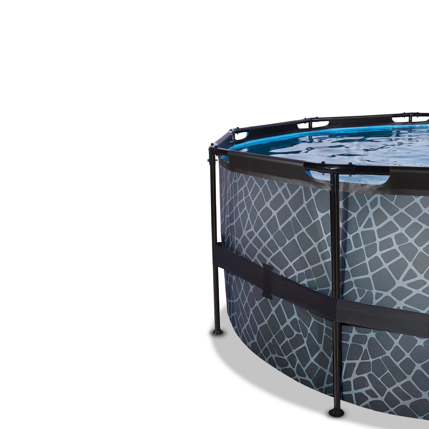 Ontdek hoe stevig een rond opzetzwembad kan zijn: het gepoedercoate stalen frame en de sterke poten van het EXIT Stone zwembad zorgen ervoor dat het bad altijd stabiel staat en jarenlang meegaat. Tijd voor een frisse duik in je eigen EXIT zwembad in de tuin!