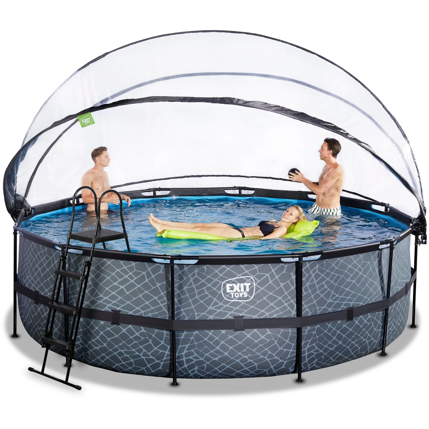 Het EXIT Stone zwembad ø488 x 122 cm is een rond grijskleurig frame zwembad met overkapping. Het zwembad is standaard voorzien van een zandfilterpomp en een zwembadtrap, waarmee je veilig het zwembad in en uit kunt stappen. Door de zeer royale diameter en een diepte van maar liefst 122 centimeter beleef je in het zwembad van EXIT Toys een zomerlang zwemplezier met familie en vrienden.