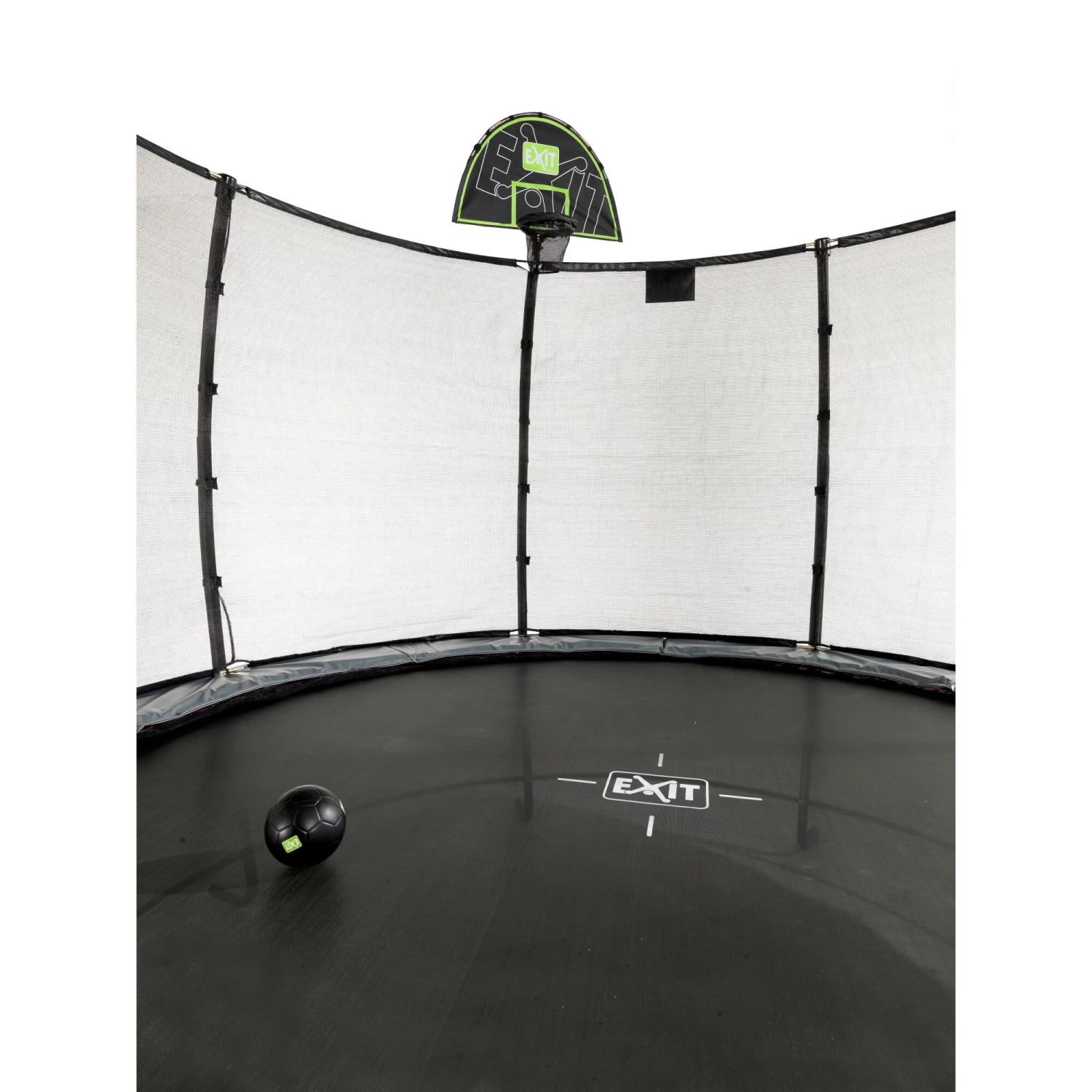 Met de EXIT trampoline basket in de kleuren groen en zwart beleef je nóg meer plezier tijdens het trampolinespringen. De trampoline basket kan eenvoudig op de paal van de veiligheidsnetten met een diameter tussen 25 en 38 millimeter worden gemonteerd. De trampoline basket van EXIT Toys wordt geleverd met een bijpassende zachte foambal. Oefen de coolste moves en een échte slamdunk met de EXIT trampoline basket!