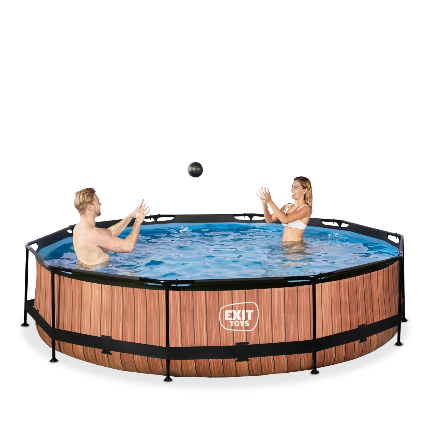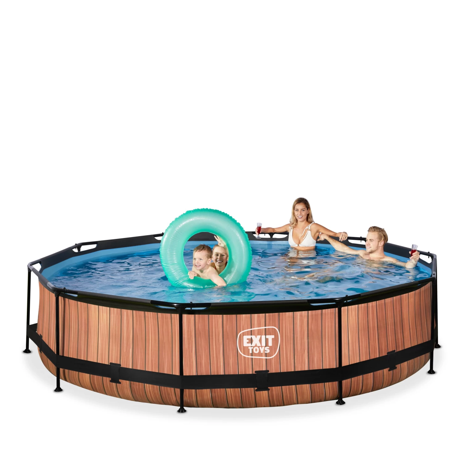 Het EXIT Wood zwembad ø360x76cm is een groot rond frame zwembad met houtlook. Het zwembad is standaard voorzien van een filterpomp en valt op tussen andere zwembaden door zijn stoere houtpatroon. Ben je op zoek naar een leuk en tegelijkertijd uniek en hoogwaardig frame zwembad in je tuin? Steel de show met de ronde zwembaden van EXIT Toys!