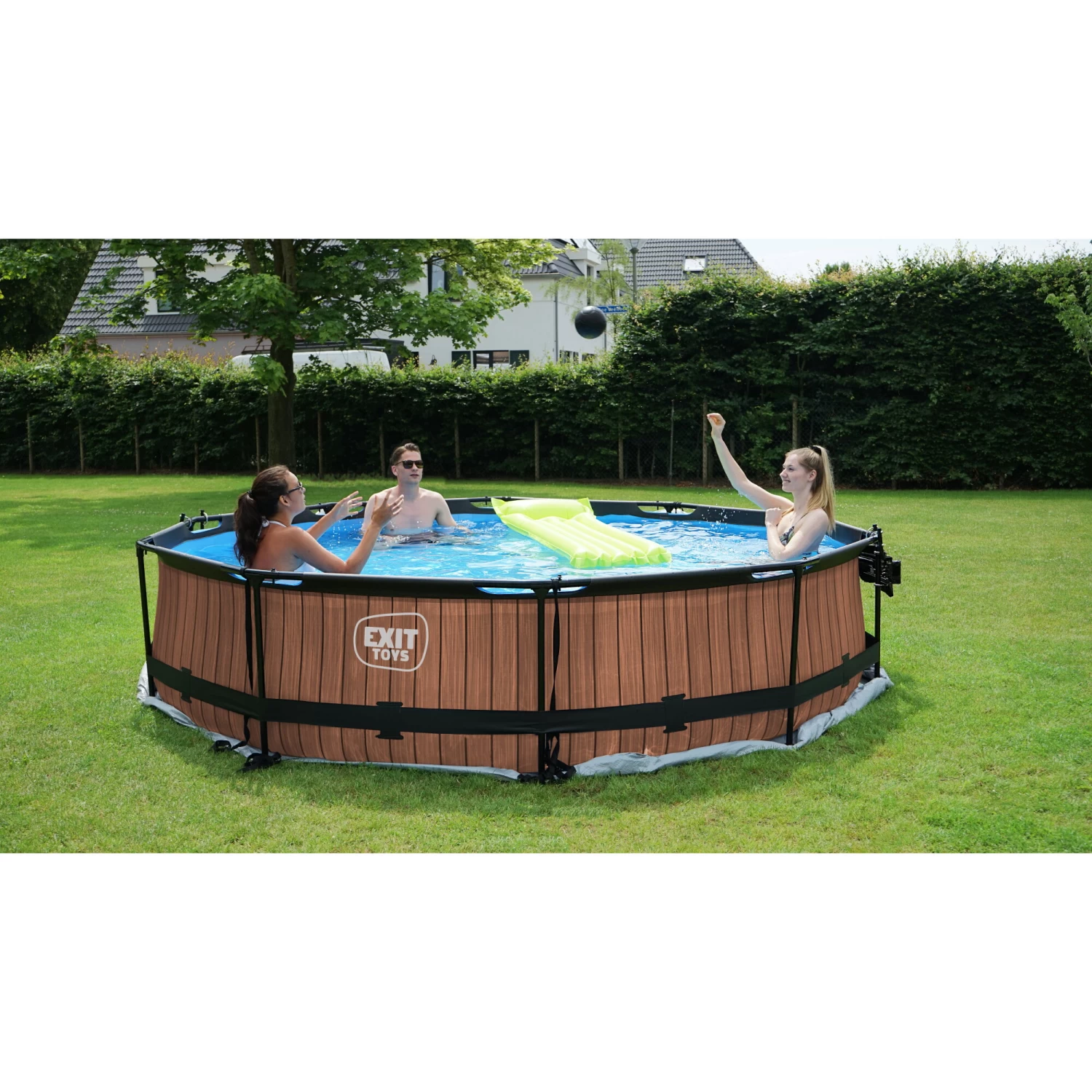 EXIT Wood zwembad ø360x76cm met filterpomp – bruin
