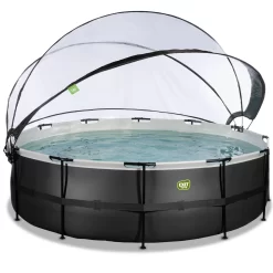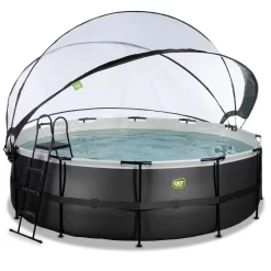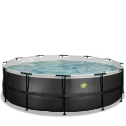 EXIT TOYS EXIT Black Leather Zwembad ø488x122cm Met Zandfilterpomp En Overkapping – Zwart